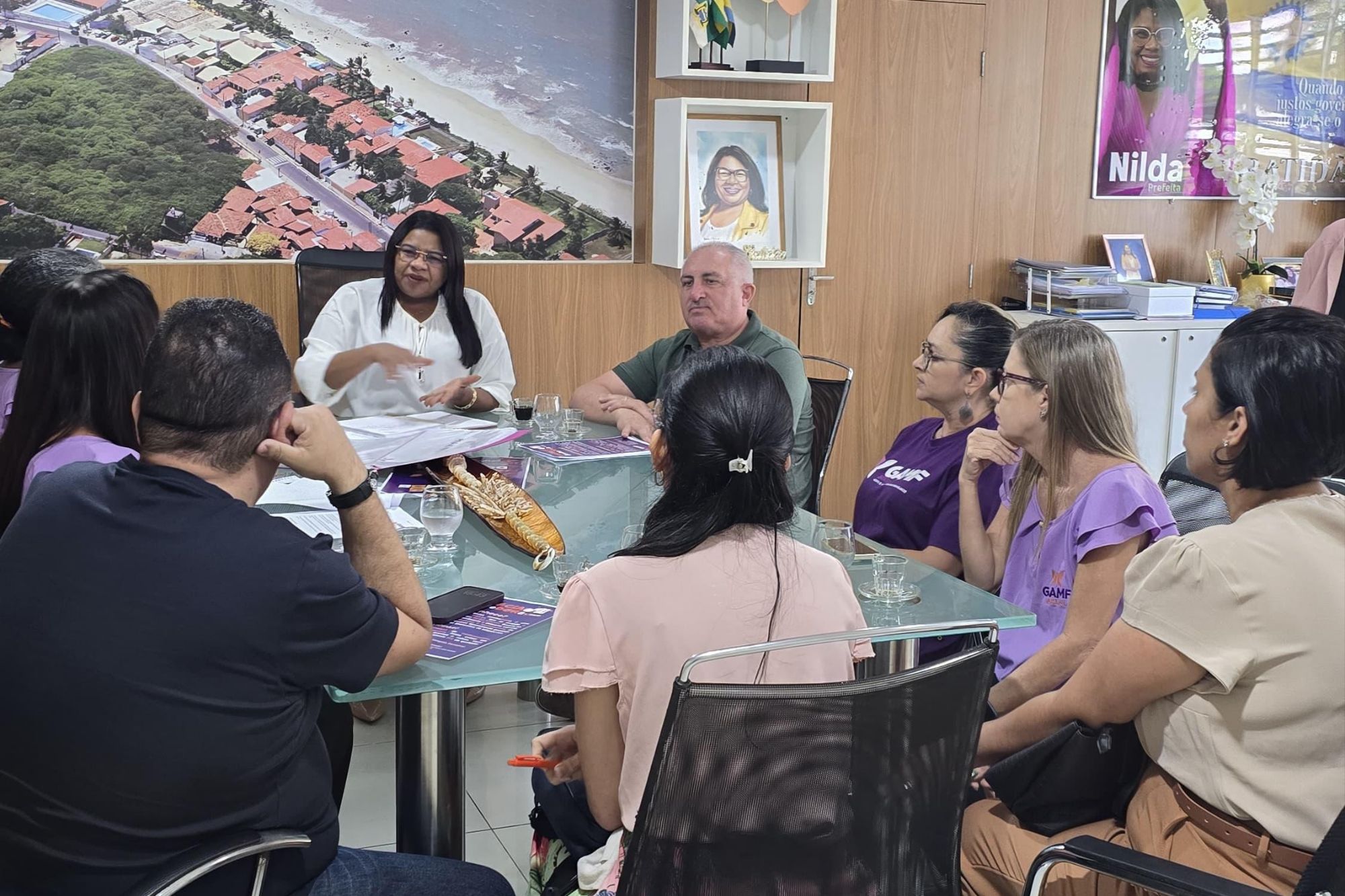 Uma importante reunião realizada nesta quarta-feira (23) marcou um avanço significativo no apoio às pessoas com fibromialgia no município. O encontro reuniu o Grupo de Apoio Mútuo aos Fibromiálgicos (GAMF), a prefeita Nilda Cruz, o vereador Irani Guedes e representantes da Secretaria Municipal de Saúde para discutir políticas públicas voltadas a essa população. Durante a apresentação, o GAMF expôs seu trabalho de apoio, apresentou o modelo de carteirinha de identificação para portadores da condição e propôs um projeto de lei específico para garantir direitos e atendimento adequado aos fibromiálgicos.