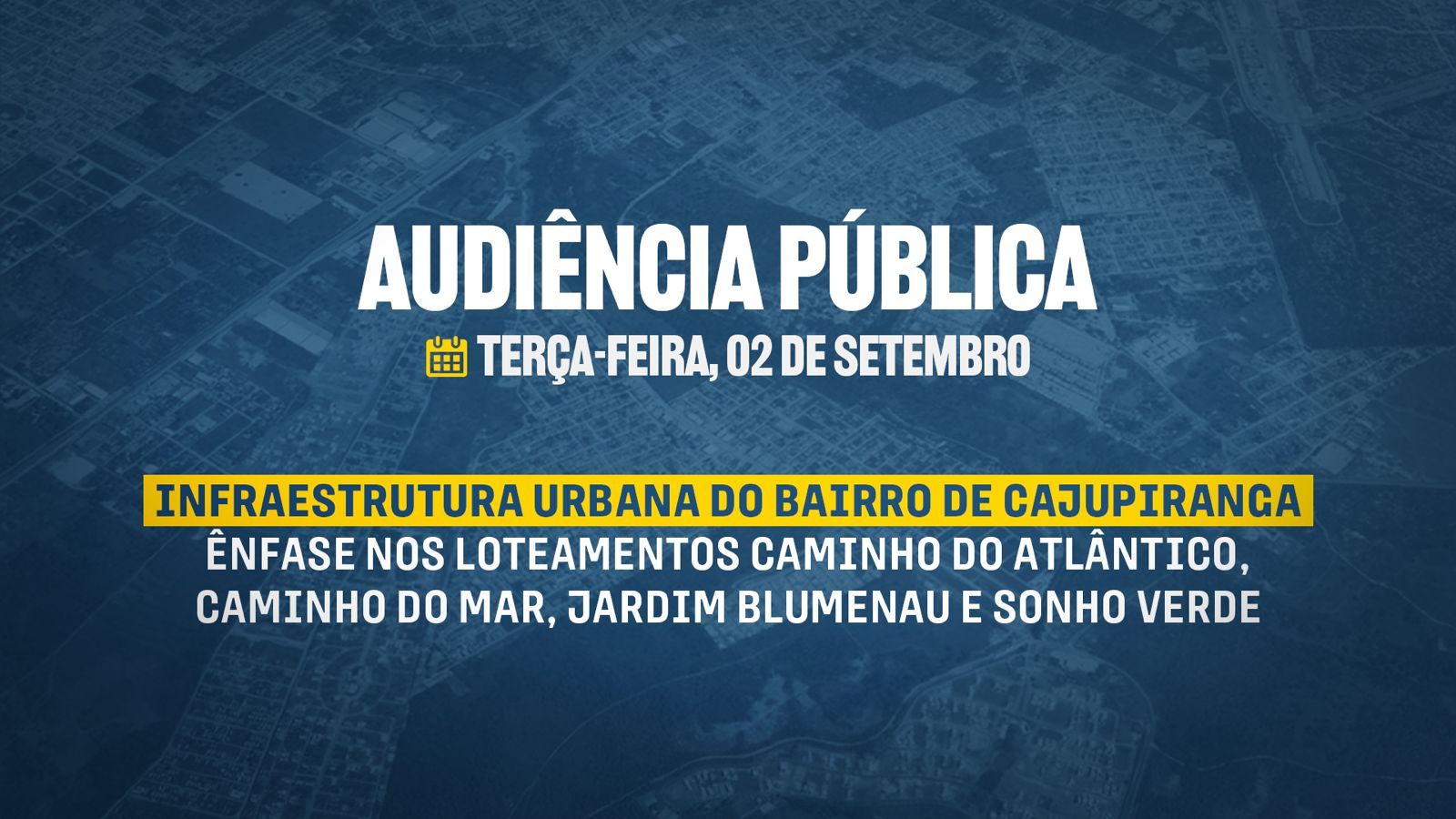 O encontro terá como foco os loteamentos Caminho do Atlântico, Caminho do Mar, Jardim Blumenau e Sonho Verde, abordando os desafios enfrentados pela comunidade, como ruas não pavimentadas, obras inacabadas e necessidade de maiores investimentos em mobilidade, drenagem e infraestrutura.